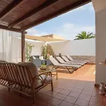 Von einer Terrasse der Unterkunft in La Oliva aus können Gäste einen Ausblick auf die Berge genießen.